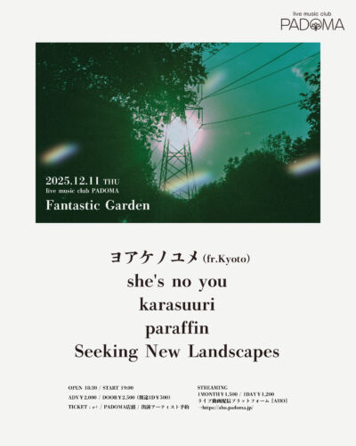 出演 : ヨアケノユメ(fr.京都) / she's no you / karasuuri / paraffin / Seeking New Landscapes -