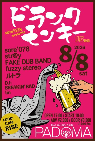 出演 : StereoSystem / w-shun with ナオミチ[KNOCK OUT MONKEY] / POWERBOY / asano raincoat / Hybrid | Food : PUBLIC BAL PACINO -