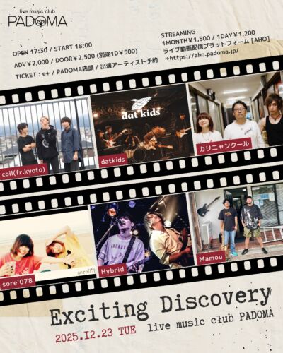 出演 : Solarrio(fr.France) / coil(fr.京都) / クロロカンナ / sore'078 / NÖVEIL / Mamou -