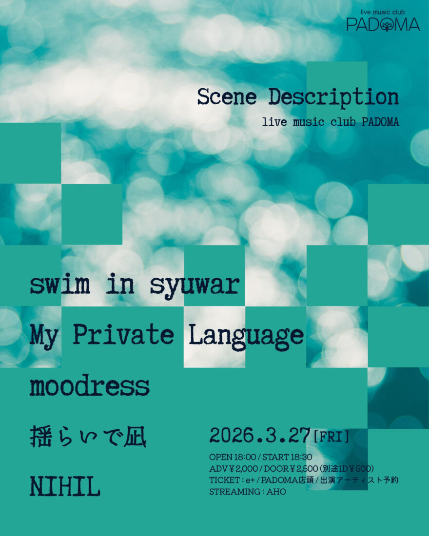 出演: swim in syuwar / My Private Language / moodress / 揺らいで凪 / NIHIL