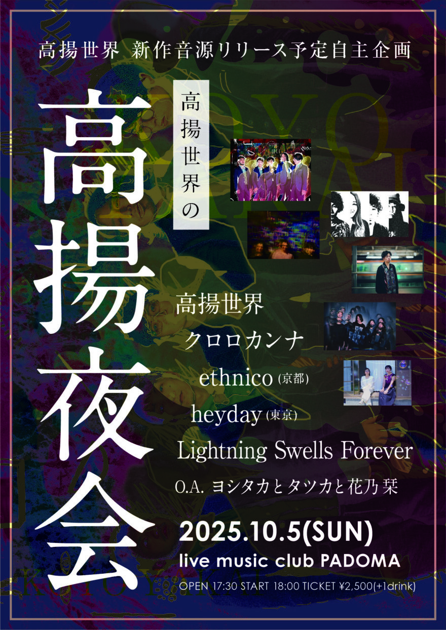 高揚世界 / クロロカンナ / ethnico(fr.京都) / heyday(fr.東京) / Lightning Swells Forever / O.A : ヨシタカとタツカと花乃栞