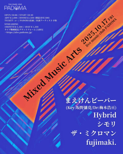 まえけんビーバー(KEYBOARD:坂野雄亮/DRUMS:梅本浩亘) / Hybrid / シモリ / ザ・ミクロマン / fujimaki.