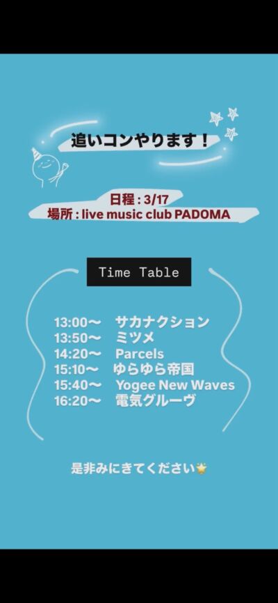 <以下コピーバンド> 電気グルーブ / Yogee New Waves / ゆらゆら帝国 / Parcels / ミツメ / サカナクション